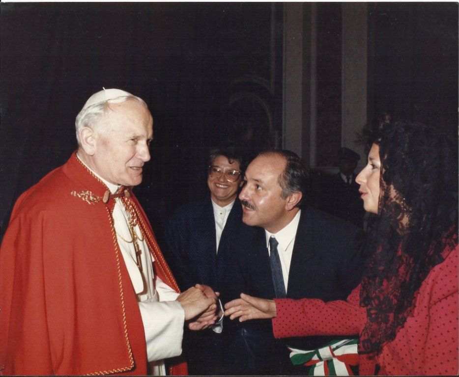 In foto Anni 80 – Roma Incontro con il Papa dopo la Santa Messa per la Canonizzazione del Padre Maestro – 13-04-1986 – Foto fornita da Vincenzo Di Siena