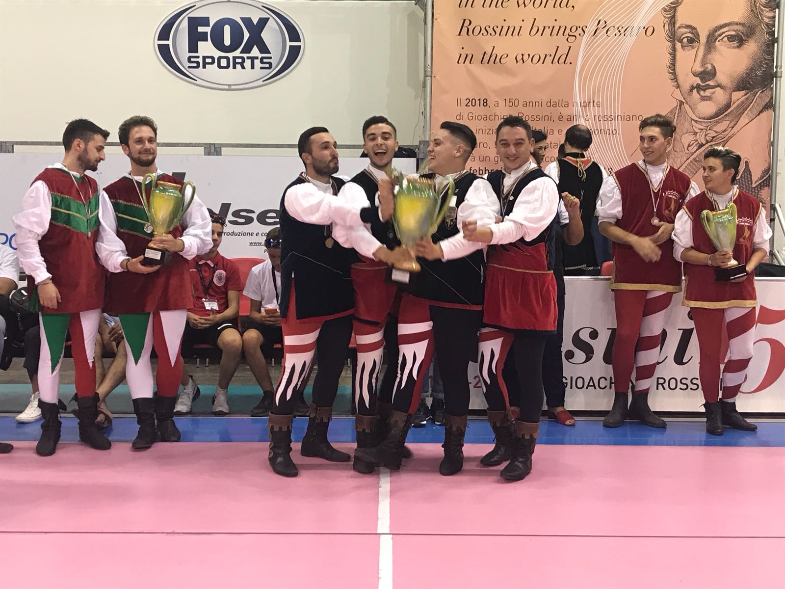 Trionfo con il titolo di Campioni italiani per gli sbandieratori di Lucera nella “piccola squadra” composta da Luca Avallini, Francesco Calabrese, Pasquale Di Muro e Davide Mainieri. Dietro di loro le compagnie di Montefalco e Legnano.