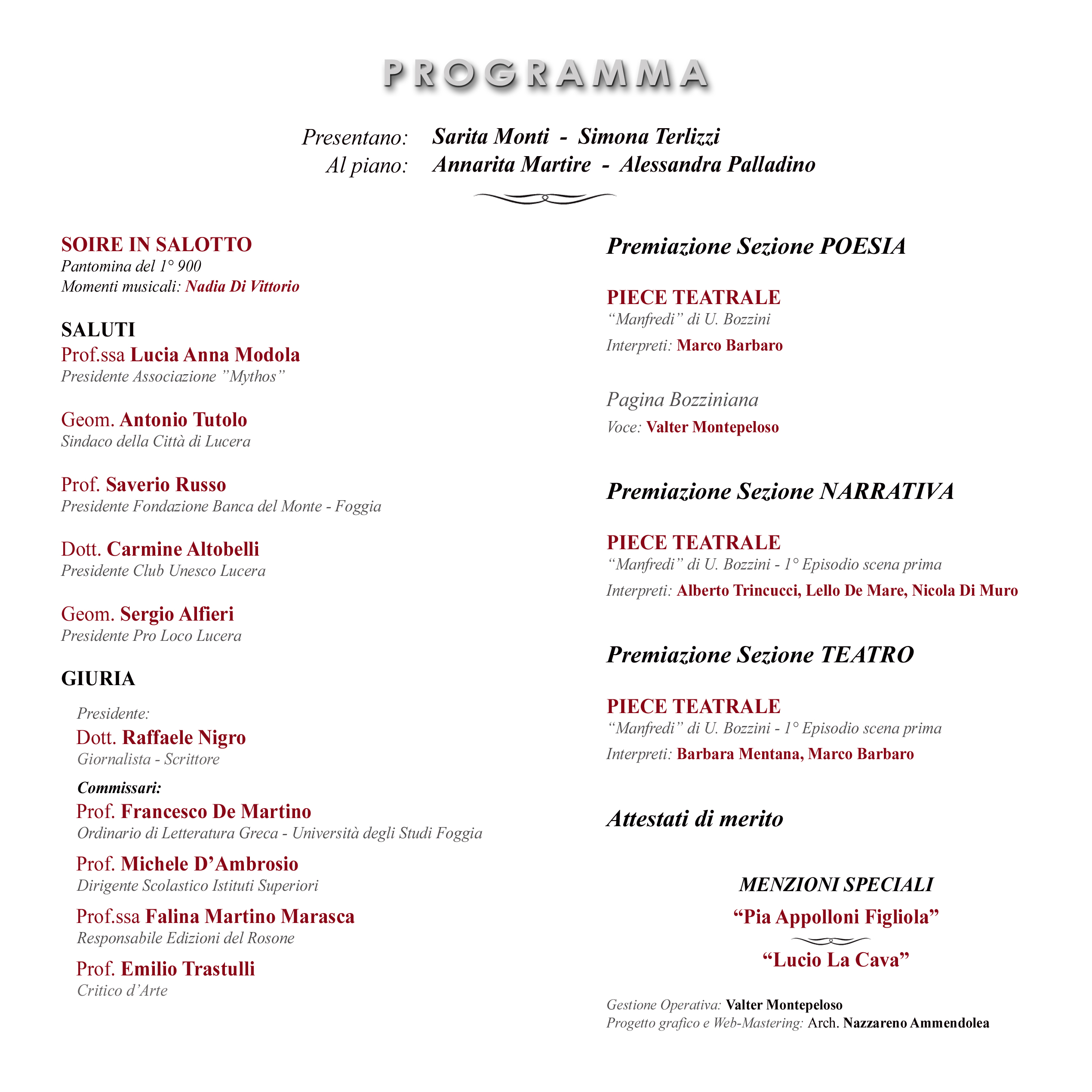 L’evento è organizzato dall’associazione culturale e teatrale “Mythos” in collaborazione con il Club Unesco e la Pro Loco di Lucera.