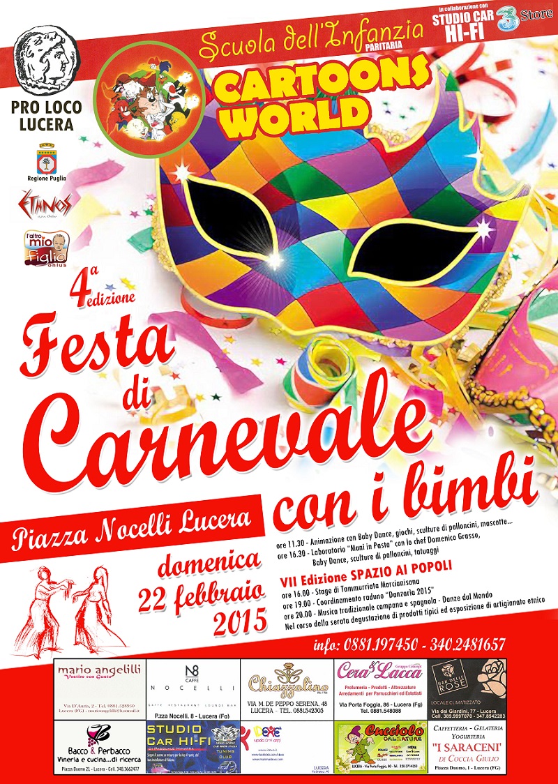 Cartoon’s World organizza, in collaborazione con la Pro Loco di Lucera, la “4^ Edizione Festa di Carnevale“.
