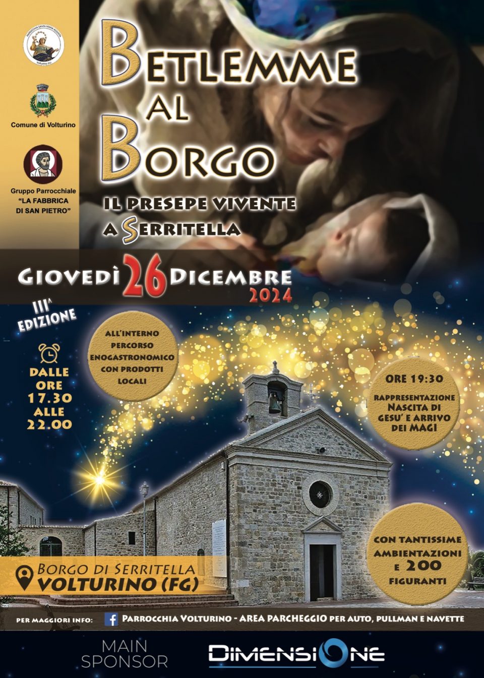Tutto pronto per la rappresentazione del Presepe Vivente in programma giovedì 26 Dicembre 2024. Scenario mozzafiato ai piedi di Volturino, presso il Santuario dedicato alla Santa Patrona. Più di 200 figuranti, caratteristiche ambientazioni e un percorso enogastronomico accompagneranno la serata di Santo Stefano in un luogo caratteristico dei Monti Dauni.