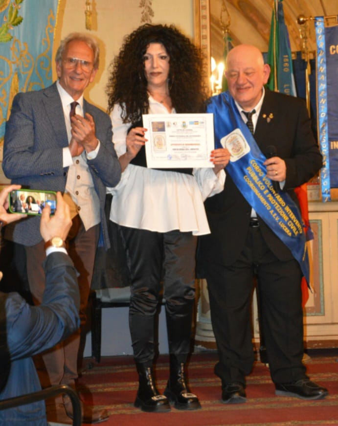 Per i saluti di rito delle autorità e istituzioni sono intervenuti l’Assessore Antonio Buonavitacola, con delega al Bilancio, Tributi, raccolta rifiuti e Polizia Locale, il Comandante della Compagnia Carabinieri di Lucera, Capitano Federico di Giovanleonardo, il Maresciallo Maggiore, Comandante della Stazione di Lucera Giuseppe Sillitti e il Vicecomandante della Guardia di Finanza, Luogotenente Nicola Palumbo. La prof.ssa Testa ha ringraziato le Forze dell’Ordine per il continuo operato di controllo e prevenzione sul territorio e per il loro impegno quotidiano a favore della legalità, della non violenza e del rispetto della legge. Hanno dunque preso parola i Presidenti o referenti delle Associazioni e gruppi presenti: il prof. Biagio Russo per “Terra Nostra”, Franco Ferrara per “I poeti del Gargano”, il Maresciallo dei Carabinieri Giuseppe Pio Padovano per l’AIDO Lucera, il Maestro e Cantautore Antonio Ninì della Misericordia per “Varese per Lucera Bella”, Antonio Fusco per “Auser-Amici del Peperoncino” la dott.ssa Adriana De Peppo, Consigliera dell’ANMIG di Foggia e Vicepresidente della Pro Loco. A prescindere dagli interventi in programma, tutte le associazioni, le Autorità e la cittadinanza sono state invitate alla concelebrazione della detta Giornata. Tanti gli artisti presenti all’evento tra cui alcuni giunti da Foggia, Apricena, Campomarino: Emma Bitri, Anna Delle Noci, Claudio Zappetta, Rosalba Clemente, Giada Iammarino (Freheit), Antonietta Scirocco, Toti e il pittore Sergio Forte (Sefor). Grande ospite della manifestazione è stata l’attrice, cantante e regista Lucia Cassini, nominata Madrina del Premio Cattedrale. La Cassini, che a Lucera girerà scene della sua fiction “Ischia for ever”, ha cantato uno dei suoi cavalli di battaglia “Balla Concetta” e ha raccontato aneddoti e barzellette deliziando il pubblico con tutta la sua bravura e simpatia. La manifestazione è stata inoltre allietata dalle danze salentine della ballerina Grazia Ferrara, dalla lettura di poesie da parte di Franco Ferrara, dall’esibizione canora in vernacolo di Mario Frascone, in arte Razza MC, dalla presenza dell’attore e regista lucerino Pasquale Iannuzzi e dei cantanti e cantautori neomelodici Denny Farra e Celestino. Per il settore “Poesia” due giovani poetesse hanno letto versi bellissimi che hanno suscitato emozioni e scrosci di applausi nel pubblico. Nancy Russo, 22 anni, laureata in Scienze dell’Educazione e della Formazione, ha presentato il suo componimento intitolato “Lucera mia” invece Viola Gesualdo, allieva della classe terza media presso l’I. C. Bozzini-Fasani di Lucera, ha letto i suoi versi intitolati “I tuoi occhi illuminano Venere”. Particolarmente toccante è stato l’intervento del Maestro Pittore Giacomo De Troia, già insignito del Premio “Pennello d’oro 2024”, a cui il Maestro Scultore lucerino Franco Scepi ha dedicato una recensione profonda e vera, letta in Sala da Silvio Di Pasqua. Si è passati infine all’assegnazione del Premio Cattedrale, delle Menzioni Speciali e degli attestati. Sono stati insigniti del Premio Cattedrale 2025