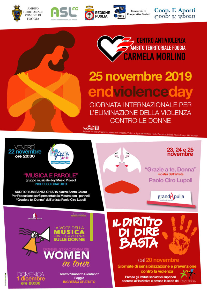 Anche quest’anno, in occasione della Giornata Internazionale per l’eliminazione della violenza contro le donne, l’Ambito Territoriale di Foggia in collaborazione con il Consorzio OPUS e la sua consorziata “F. Aporti”, ha organizzato una serie di iniziative volte a sensibilizzare la cittadinanza sul tema.