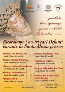 Anche quest’anno l’Ufficio diocesano per la pastorale della salute, in collaborazione con la Cappellania cimiteriale e il Gruppo di mutuo auto “Ali di Speranza”, propone alle Comunità parrocchiali della Zona pastorale di Lucera una celebrazione eucaristica per ricordare tutti i cari defunti.