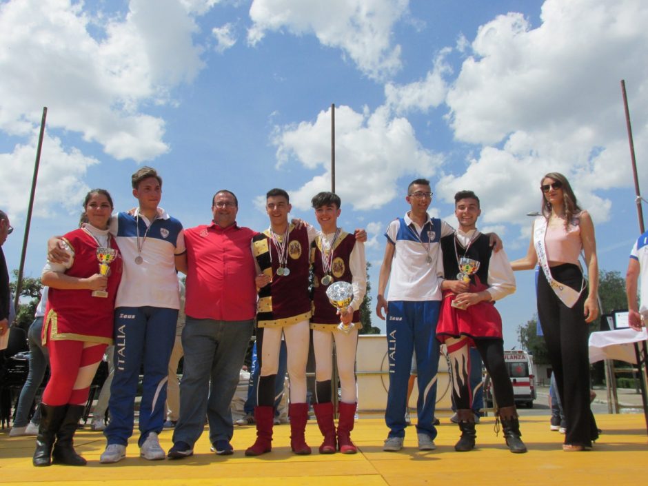 I giovani della compagnia di Lucera si sono aggiudicati nella combinata (la somma dei risultati delle varie gare) l’ambito titolo di Campioni d’Italia, seguiti dagli Sbandieratori e musici di Soriano nel Cimino (Viterbo), vincitori dello scorso anno, e da quelli di Montefalco (Perugia) che si sono classificati terzi.