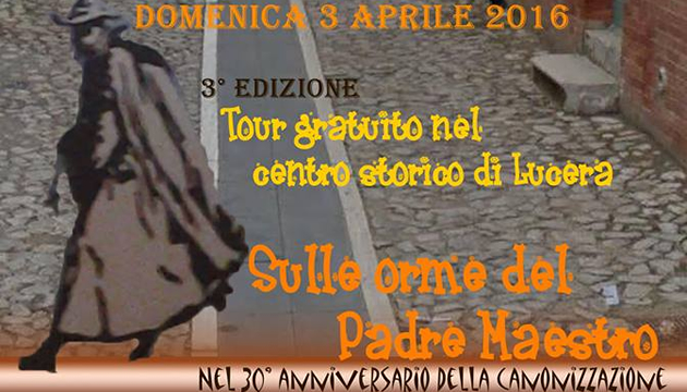Nel trentesimo anniversario della canonizzazione di San Francesco Antonio Fasani, domenica 3 aprile 2016 torna “Sulle orme del Padre Maestro”: il tour gratuito nel centro storico di Lucera alla riscoperta dei luoghi più significativi della vita di Santo di Lucera.