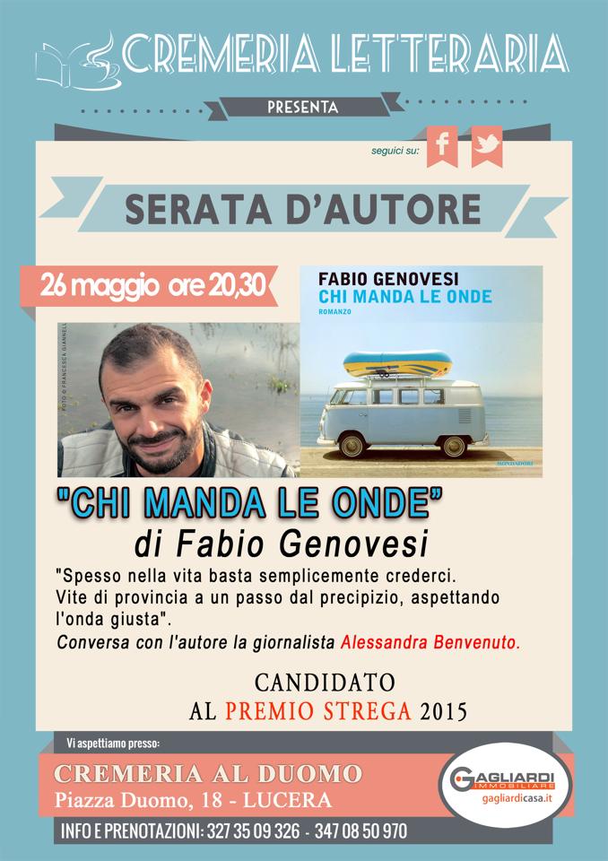 In questa occasione, precisamente in data 26 maggio alle ore 20.30, vi sarà la presentazione del libro di Fabio Genovesi “Chi manda le onde”, uno tsunami di emozioni candidato al premio Strega 2015.