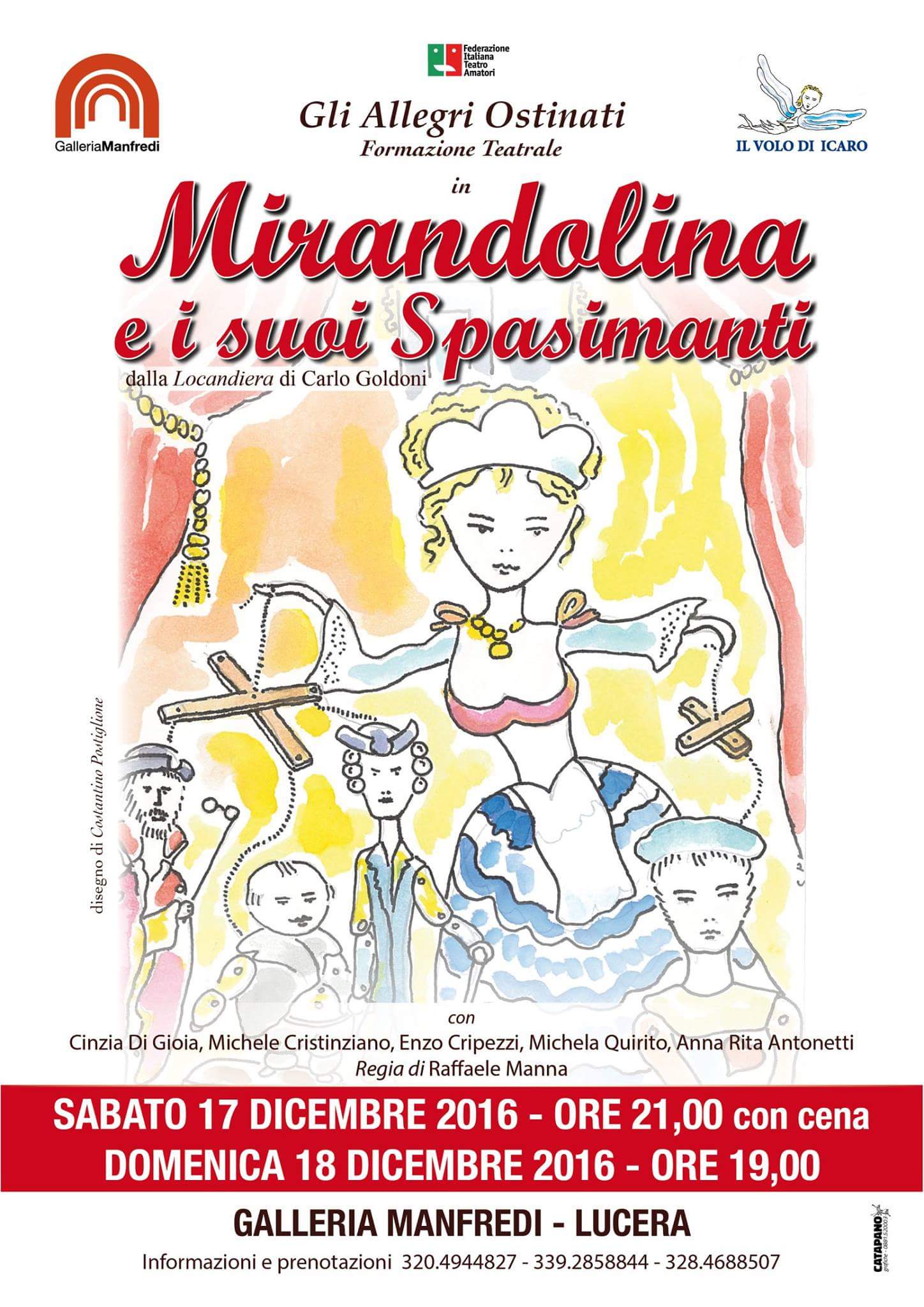 mirandolina e i suoi spasimantiSabato 17 e domenica 18 dicembre si torna al Teatro in Galleria con: “Mirandolina e i suoi Spasimanti” con la compagnia “Allegri Ostinati”.